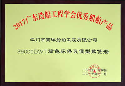 | 2016年5月20日 JNS通過廣東省第六批博士后創(chuàng)新實踐基地審批。 2016年5月30日 JNS入選工信部2016年兩化融合管理體系貫標試點企業(yè)名單。 2016年10月13日 JNS榮登2016年廣東省制造業(yè)企業(yè)500強榜單。 ![]() 2016年12月 JNS B型39000載重噸綠色環(huán)保靈便型散貨船被認定為廣東省高新技術產品。 |