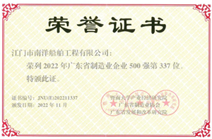 ![]() 2022年11月 榮獲“廣東省制造業(yè)企業(yè)500強"第337位。