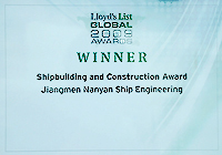 JNS won Shipbuilding and Construction Award at Lloyd's List GLOBAL 2009 AWARDS.