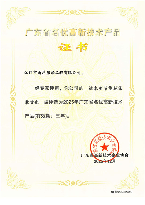 資質(zhì)榮譽(yù)您當(dāng)前位置: 首頁 > 關(guān)于JNS > 資質(zhì)榮譽(yù) > 《運(yùn)木型節(jié)能環(huán)保散貨船》 被認(rèn)定為廣東省高新技術(shù)產(chǎn)品