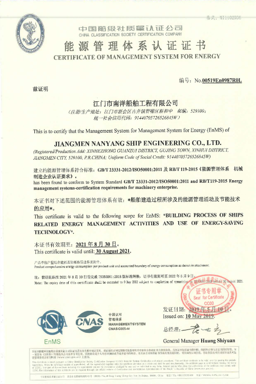 公司已于2019510日順利取得能源管理體系認(rèn)證證書。